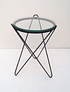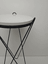 patas de acero electro pintado color negro y cubierta a elección (madera, vidrio, quarzo blanco o granito negro). al ser un trabajo artesanal las dimensiones pueden variar ligeramente.